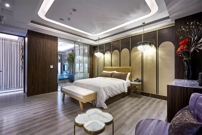 在眾多主題套房之中,「星玥總統套房」是琺何的熱門房型,78坪大空間包含主臥、電動麻將房、KTV,以及能容納20人烤肉的空中花園庭院,烤肉爐具品牌也會替房客準備好,入住即可開趴,是不少公司團體、朋友聚會預定舉辦活動的新竹商務住宿旅館推薦hotel。