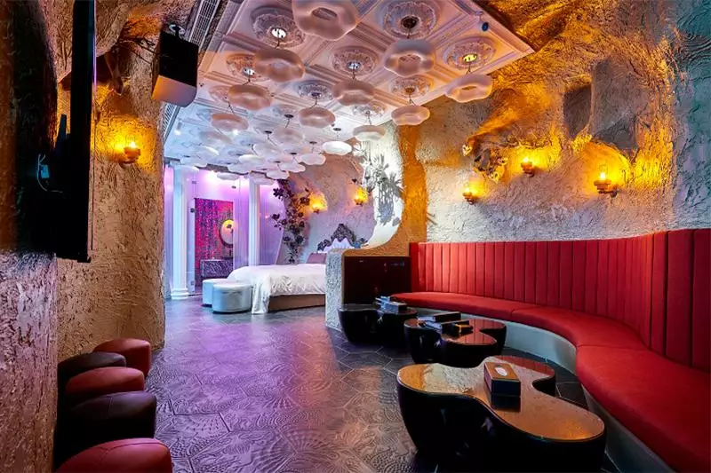 琺何也擁有許多特殊房型,例如:以愛斯基摩冰屋為概念的白色空間,陽光透過天井照射下來,彷彿置身極地永晝時光;以土耳其地獄飯店為靈感打造的微驚悚主題房,大量運用骷顱元素與血紅色調,風格十分特別,是館內頗受歡迎的房型。