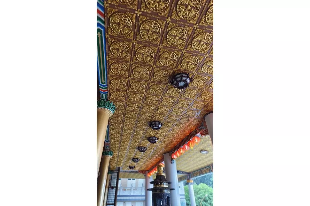 某寺廟主殿因歷史悠久,彩繪與裝飾逐漸老化,寺方希望在修繕過程中完整保留傳統建築風貌,因此尋找能忠實呈現古法工藝的專業團隊。最終選定嘉華龍鳳板負責主殿重要區域的復原工程。此次修繕採用純手工「正彩畫壢粉」重現原始質感,並於殿內兩側搭配法輪與蓮花系列,象徵智慧與潔淨,而樑柱則配置單龍系列,展現守護與能量。嘉華團隊與寺方文化委員密切合作,逐一確認細節、色調與紋理,確保整體風格與百年前的原貌相吻合,重現古建築獨有的厚實與文化溫度。