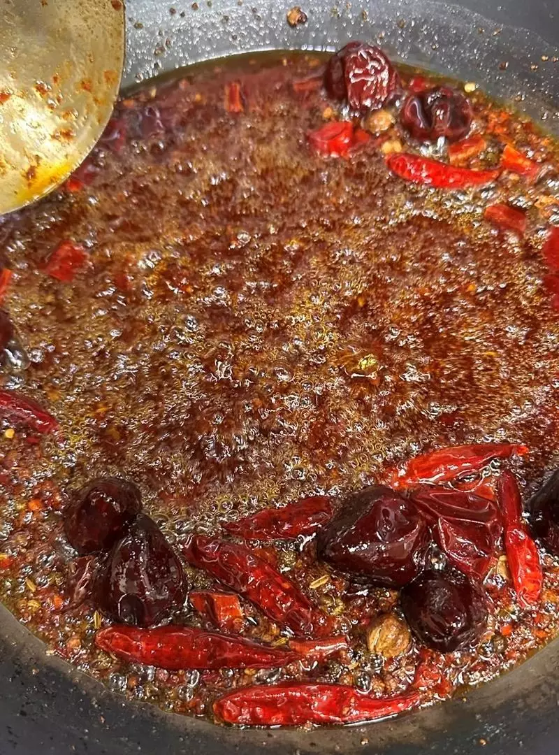 現炒現熬的麻辣湯底,香麻濃郁一口上癮。圖/尚鮮吃到飽火鍋提供