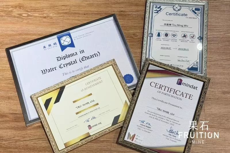 水晶相關證照。圖/果石Fruition Mine提供