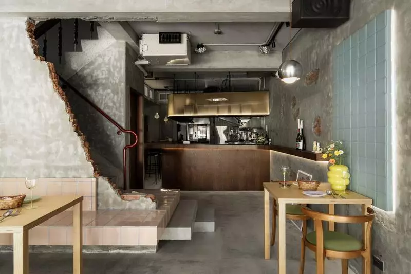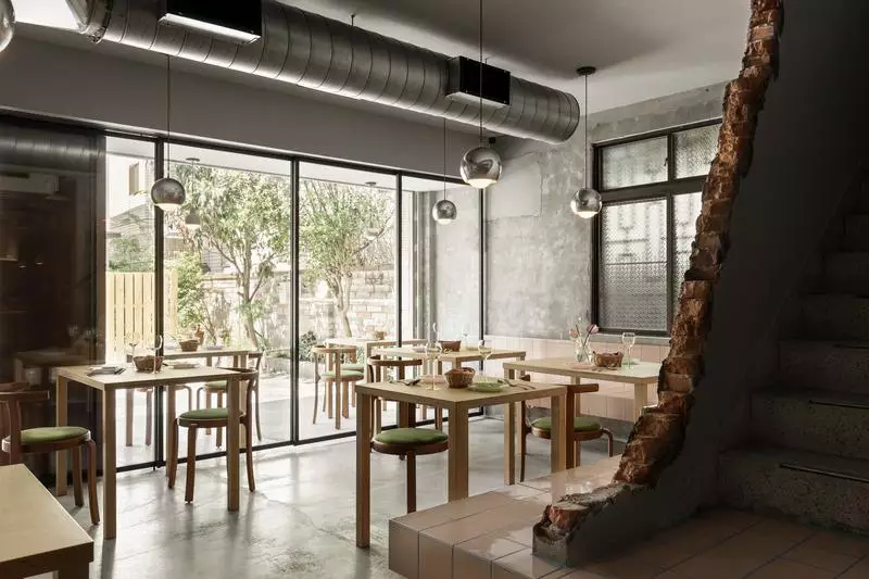 1.材質的敘事與對比:透過水泥、紅磚與現代磁磚的搭配,完美協調歷史痕跡與現代美學,實現「未完成感」的高級美學。